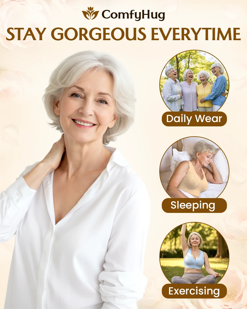 Crafted from a premium, breathable cotton blend, this bra feels like a second skin. ComfyHug won’t shrink in the wash and it’s specifically tailored for a mature, sensitive touch.