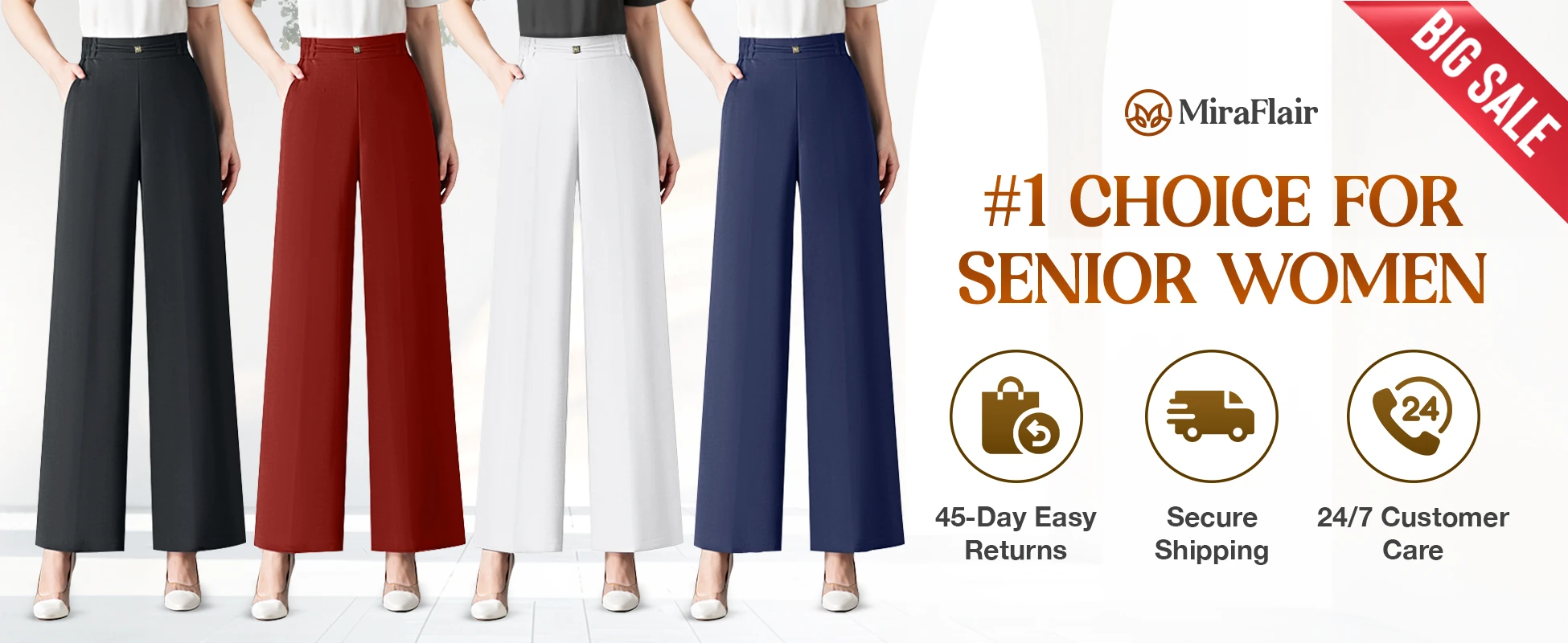 Experience timeless chic with MiraFlair, wide-leg trousers that bring effortless comfort, flowing elegance, and a flattering silhouette for senior women